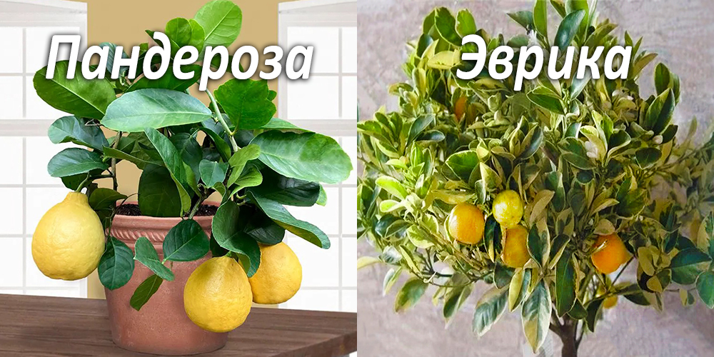 Пандероза – гибрид лимона с помело. Имеет самые крупные плоды из всех сортов комнатных лимонов. Эврика – раскидистое пестрое невысокое дерево со сладкими следка кисловатыми плодами.