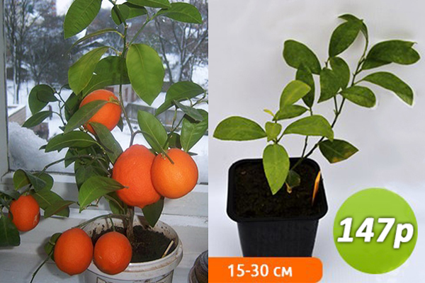 Вечнозеленое плодовое комнатное дерево кустовидной формы высотой до 1 м. Крона округлая, более мощная, чем у лимона со свисающими вниз ветвями, листья темно-зеленые, глянцевые, с запахом, кора оливково - серого цвета, на ветвях сильно-развитые колючки 1-2 см. Цветы розовато-белые, снаружи лиловые, ароматные, диаметром 3 см, срастаются в пучки, распускаются весной и осенью. Плодоносят круглый год. Плоды крупные весом 300-500 грамм оранжевые, малосемянные, ароматные. Кожура тонкая, малобугристая. Вызревают 4-5 мес. Мякоть очень сочная, сладкая. Стоимость за 1 деревце 147 руб.